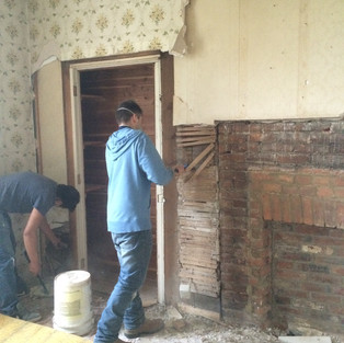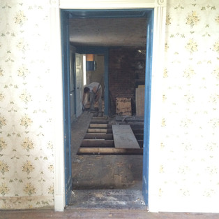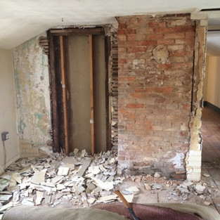 Next, we removed the walls hiding the fireplaces. We knew a beautiful treasure (or big investment) was waiting to be found behind the awkward boxes in every room...we have 5 fireplaces, 4 chimneys, and 3 thimbles!