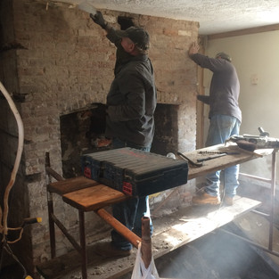 The old hearth in the kitchen was by far the most labor intensive. It was bricked shut and back filled with concrete that had been poured in from the top of the chimney. After we cleaned up the opening we had the arch raised to house a stove.